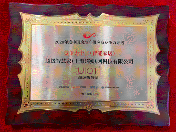 2020年12月,由明源云和中城联采联合主办的“2020中国房地产年度采购峰会暨精选供应商创新成果展”隆重举行。UIOT超级智慧家凭借领先的科技实力和丰富的落地案例,再度摘得中国房地产“2020智能家居供应商竞争力十强”。
